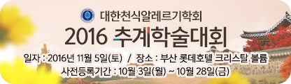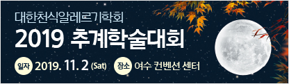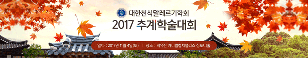 전체 메뉴 학회소개 인사말 학회 역사 & 연혁 미션 & 비전 회칙 임원 위원회 평의원 지회 연구팀 오시는길 학회소식 공지사항 시상내역 분과전문의 자격시험 자료실 천식 E-러닝 자료실 서식 학술지 및 간행 뉴스레터 최신논문소식 교과서 안내 AARD소개 AAIR소개 천식 및 알레르기 학술행사 행사일정 국외학술대회참가신청 국내학술대회 교육강좌 역대학술대회 포토갤러리 진료지침 진료지침 개발 중 진료지침 진료지침 게시판 일반인정보 아토피 천식 교육 정보센터 알레르기 전문병원 검색 알레르기 정보 대한천식알레르기학회 리포트 Membership / My Page 로그인 아이디 / 비밀번호 찾기 회원가입 안내 개인정보취급방침 메뉴 닫기