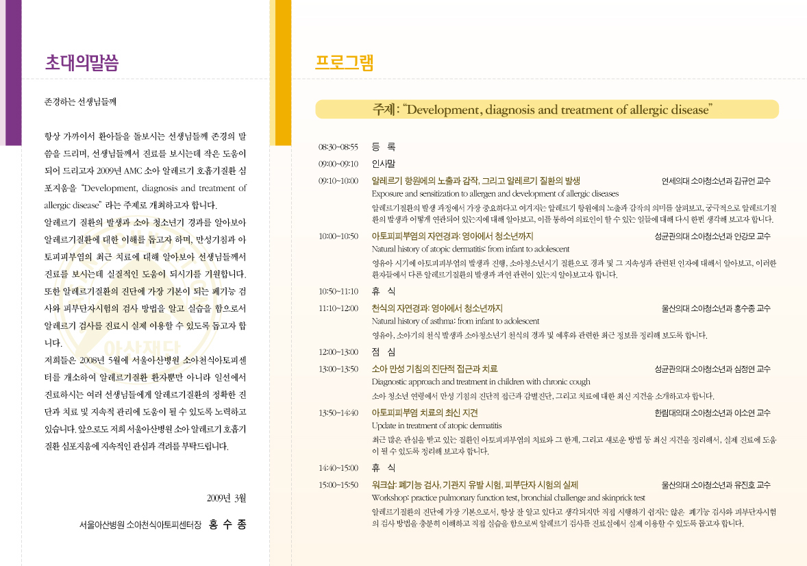 공지사항 3/1 제6회 AMC소아알레르기 호흡기질환 심포지움 안내 조회수 : 3,359 게시일 : 2009-01-22 팜플렛.jpg (다운로드 : 0회) 팜를렛내지.jpg (다운로드 : 0회) 목록