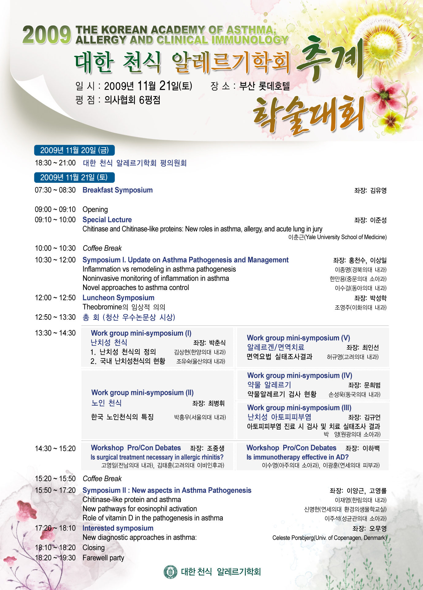* 2009 정기총회: 2009년 11월 21일(토) 12:50~13:30