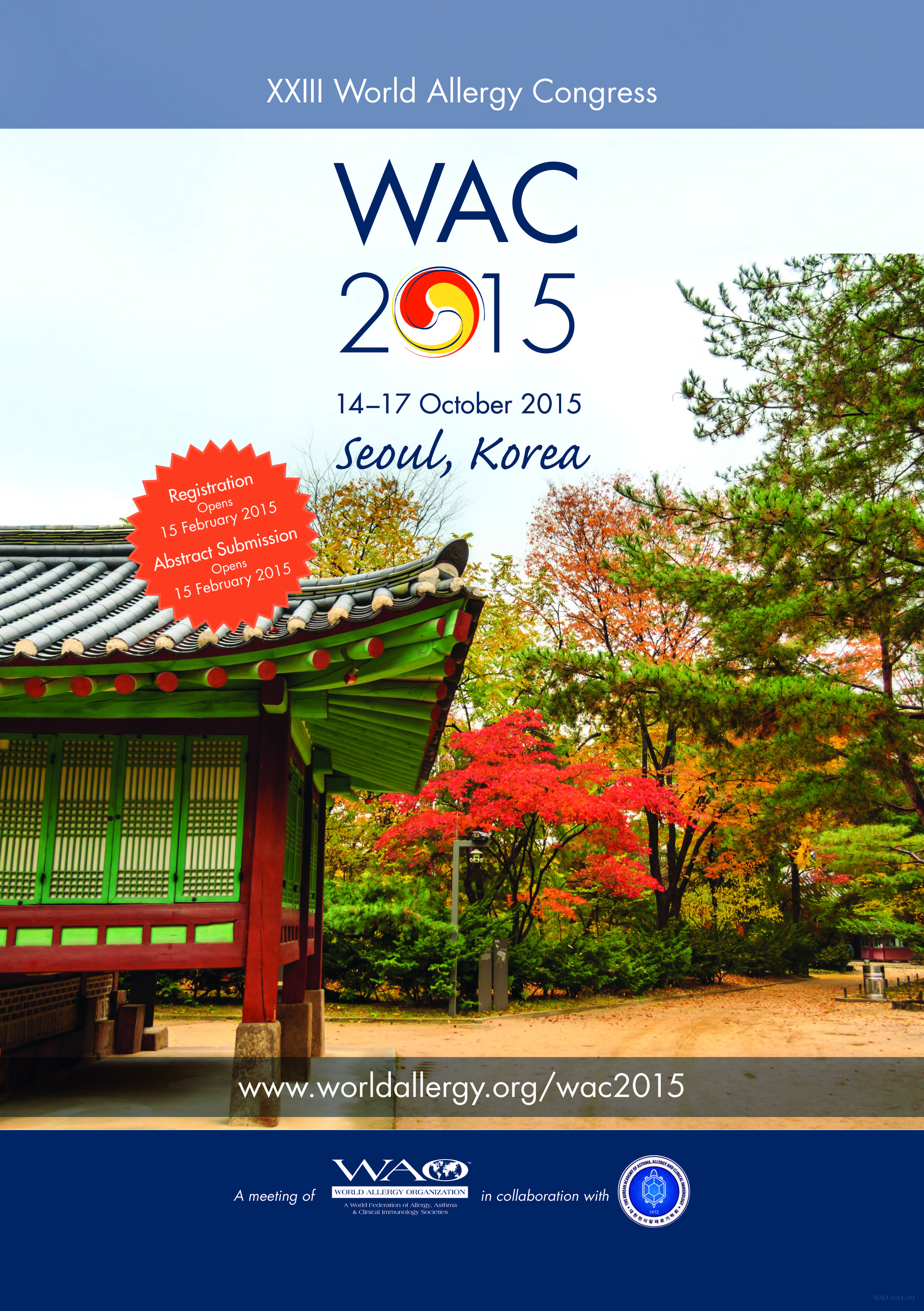 2015 세계알레르기학회(World Allergy Congress, WAC 2015)가 2015년 10월 14일부터 17일까지 서울 코엑스에서 개최됩니다. 이에 홍보 안내문과 슬라이드 파일을 첨부와 같이 올려드리니 참고하시기 바랍니다.