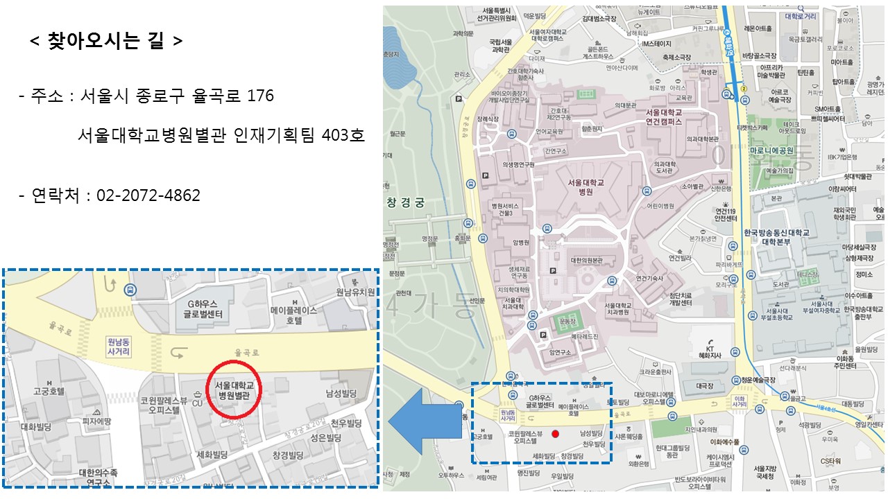 - 우편접수 : 우)03080 서울시 종로구 대학로 101 서울대학교병원 인재기획팀