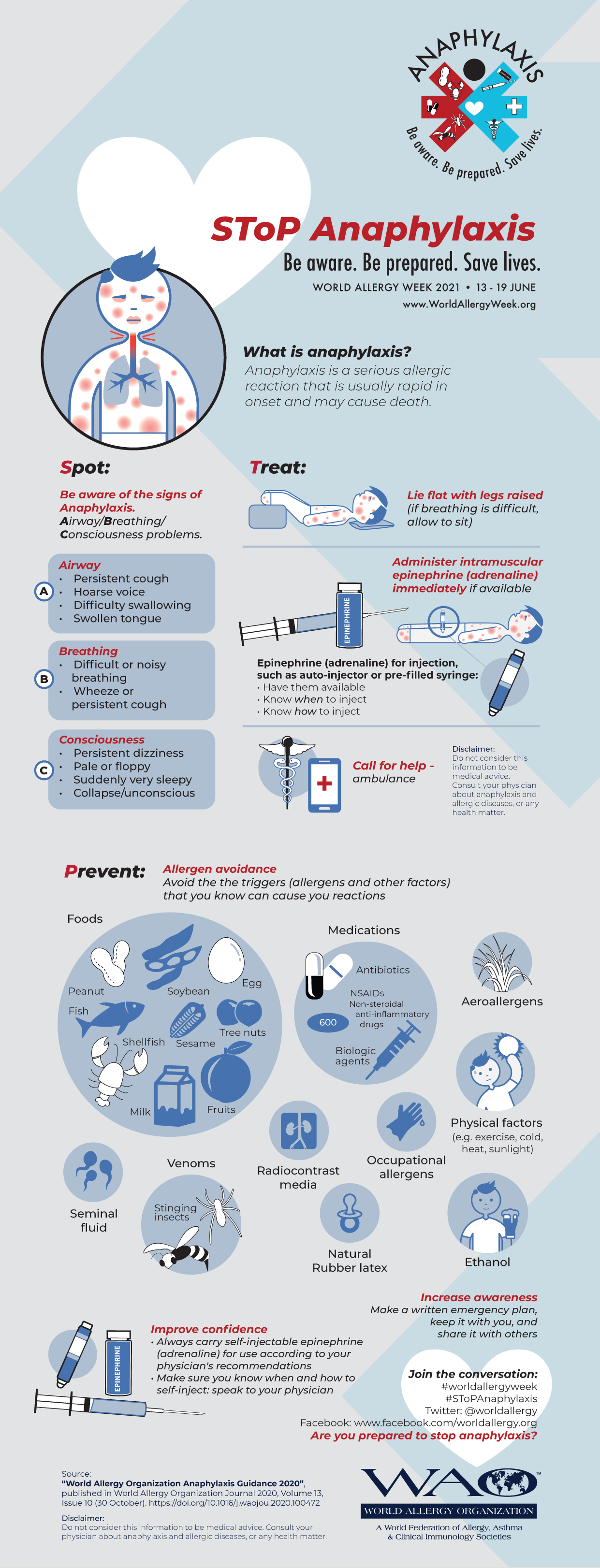 2021년 World Allergy Week는 6월 13일부터 6월 19일까지이며 올해의 캠페인 주제는 "ANAPHYLAXIS"입니다.