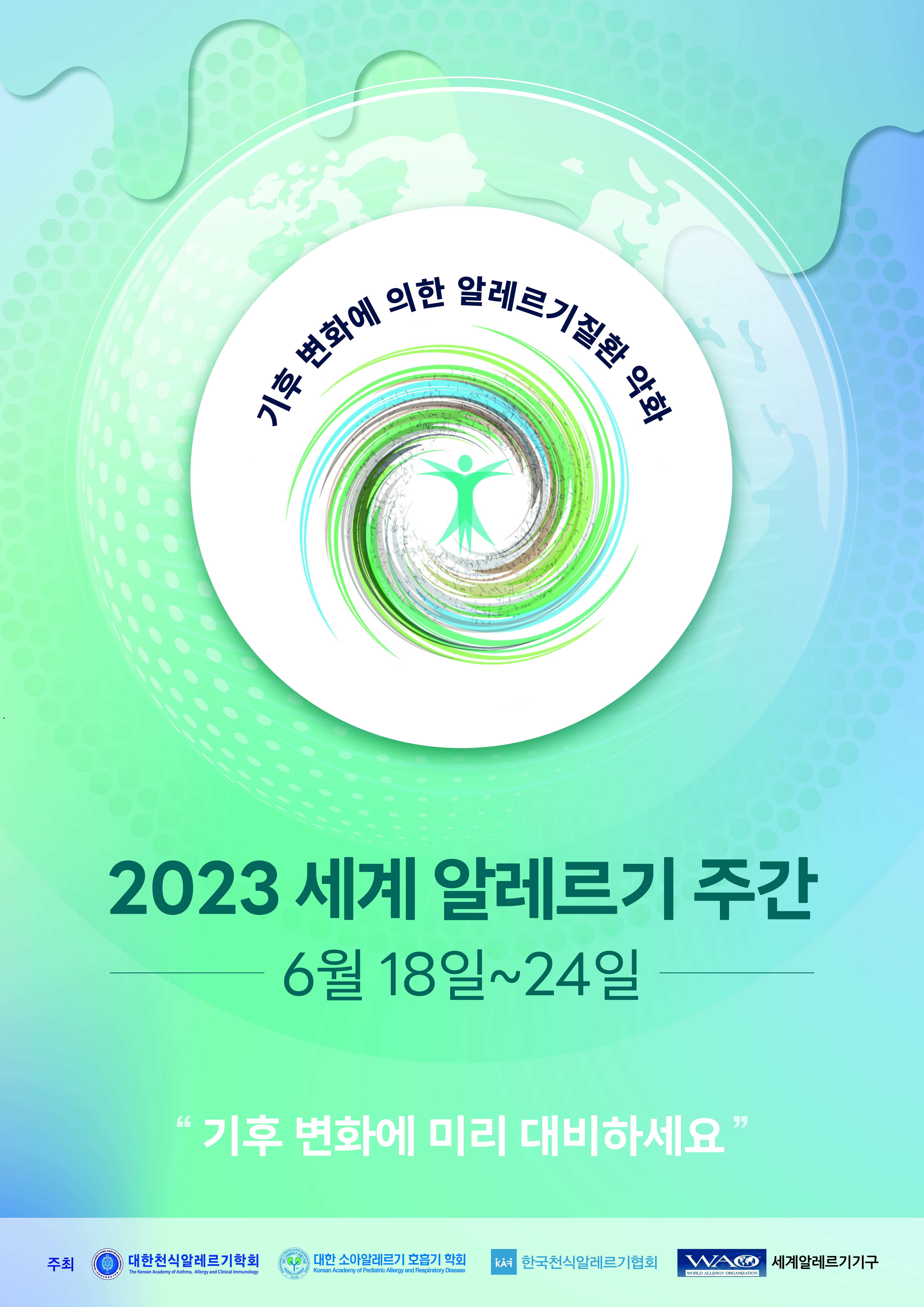 2023년 World Allergy Week는 6월 18일부터 6월 24일까지이며 올해의 캠페인 주제는 "Climate Changes Worsens Allergies"입니다.