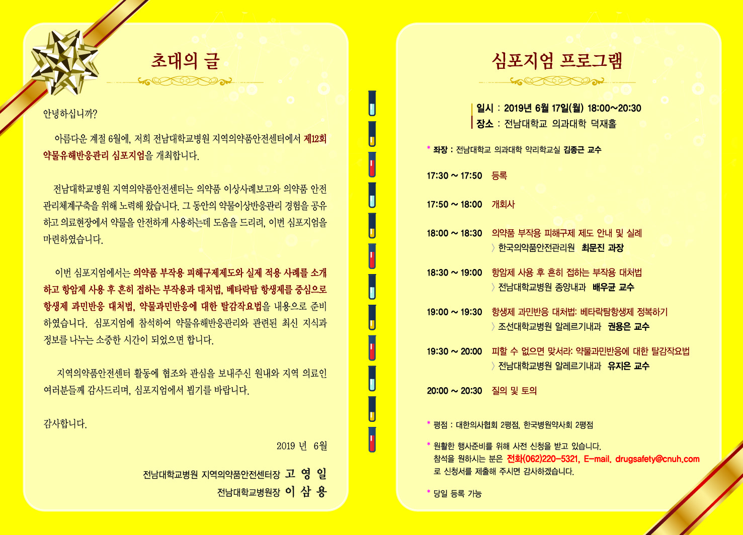 전남대학교병원 지역의약품안전센터 약물유해반응관리 심포지엄(6/17)